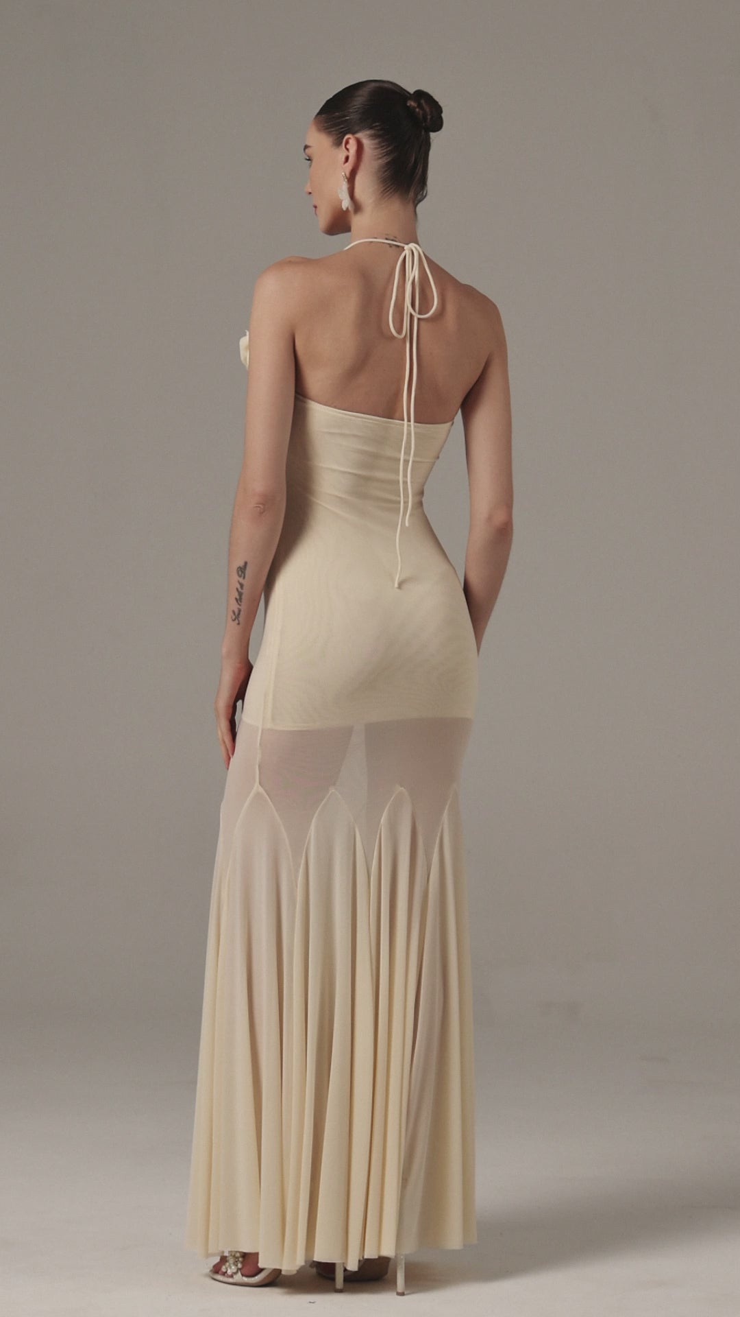 Esta delicada pieza es la expresión de sensualidad y modernidad, combinando flores y transparencia,  lo que permite ver la piel de forma sutil, aportando un toque romántico.